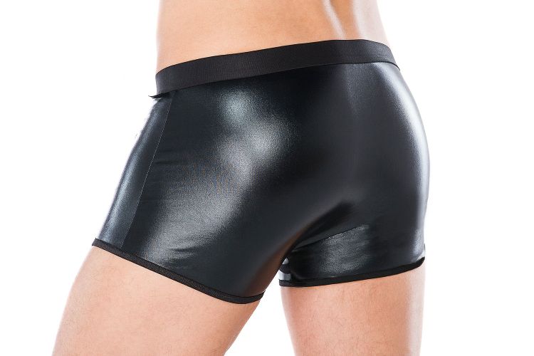 Schwarze Boxershorts aus mattem und elastischem Material mit zwei Reißverschlüssen an den Seiten. In exklusiver, neutraler Geschenkverpackung in mattschwarz!