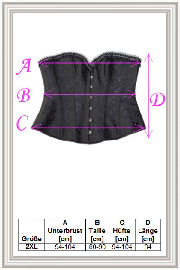 Bitte unbedingt die Größenangaben beachten. Corsagen fallen unterschiedlich groß aus.
