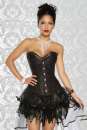 Grazie und Anmut verleiht diese wundervolle Corsage mit Ton-in-Ton Jacquard-Muster ihrer Trägerin! Sie wird auf der Vorderseite mit einem Ösenverschluß geschlossen und auf der Rückseite mit einem Satinband geschnürt. Für einen guten Sitz und angenehmen Tragekomfort sorgen die zwölf eingearbeiteten PVC-Stäbchen. Highlight ist die rundherum angebrachte Bordüre aus Tüll, Satin und silber-funkelnden Schmucksteinen.