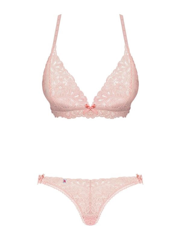 Charmantes, rosafarbenes Set aus weicher und elastischer Multistretch-Spitze. Ein BH mit bequemen Softcups und verstellbaren Trägern sowie einem praktischen Rückenverschluss für eine perfekte Passform. Das passende Spitzenhöschen mit ComfyCut-Schnitt betont Beine und Po. Die süßen Schleifendetails setzen einen femininen Akzent.