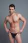 Sexy String aus schwarzem Wet-Look-Material mit Hakenverschlüssen auf der Vorderseite.